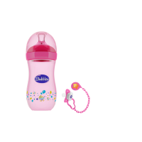 Bubbles-Natural Feeding Bottle – 280ML+Pacifier With Chain – 3M+Pink