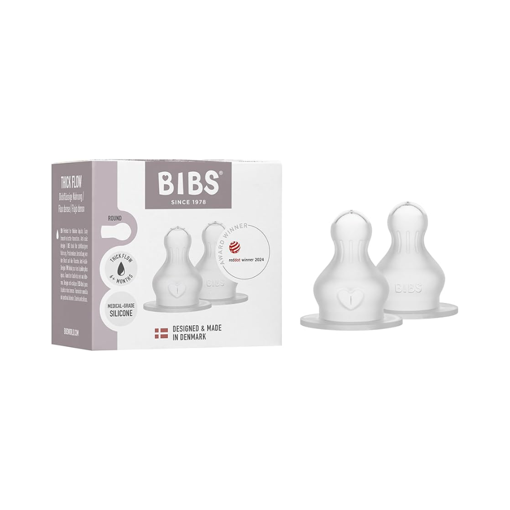 The set of 2 BIBS baby bottle nipples , made of 100% high-quality silicone , is designed to provide optimal comfort and a natural feeding experience . Thanks to the ultra-soft and non-slip texture , the nipples mimic the natural shape of the mother’s breast, encouraging a natural latch and correct sucking technique .