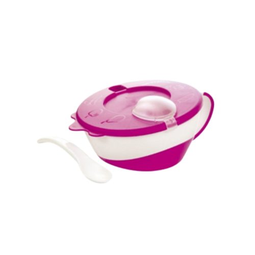 Canpol babies- Bowl with Spoon and Lid 350ml LITTLE COW -pink