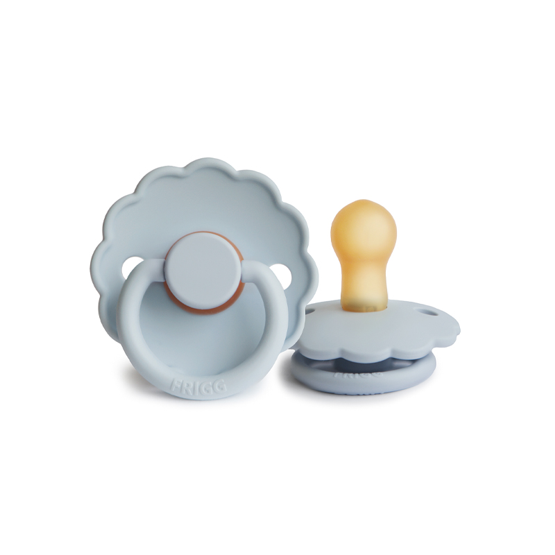 - With scalloped edges that mimic flower petals, the FRIGG Daisy natural rubber pacifier takes the thoughtful design of our Classic pacifier and adds in a whimsical, charming design. Designed for your baby’s comfort, the outward curve keeps the pacifier off their delicate skin, while features like air holes and a security handle ensure your baby stays safe.