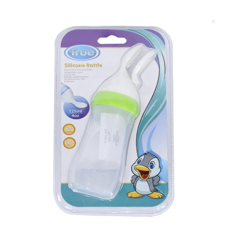 True – Silicone Bottle With A Spoon – 6M+ – Green